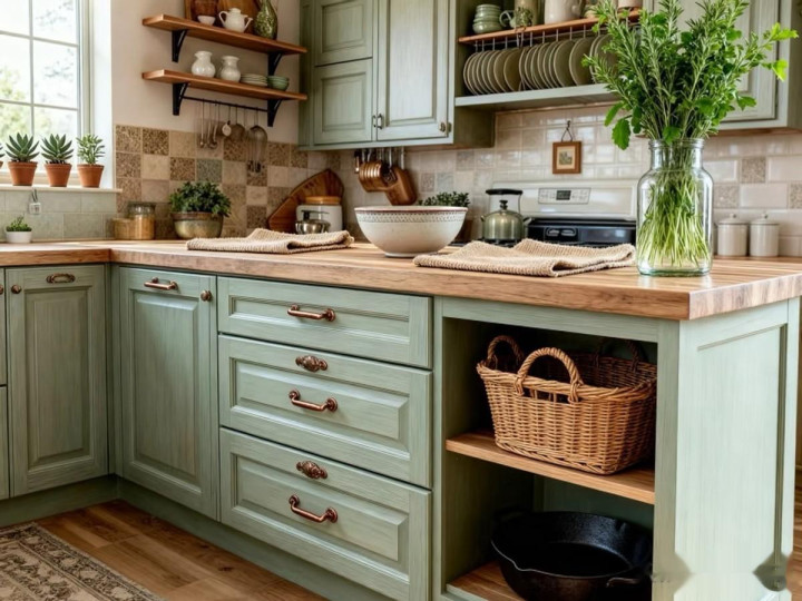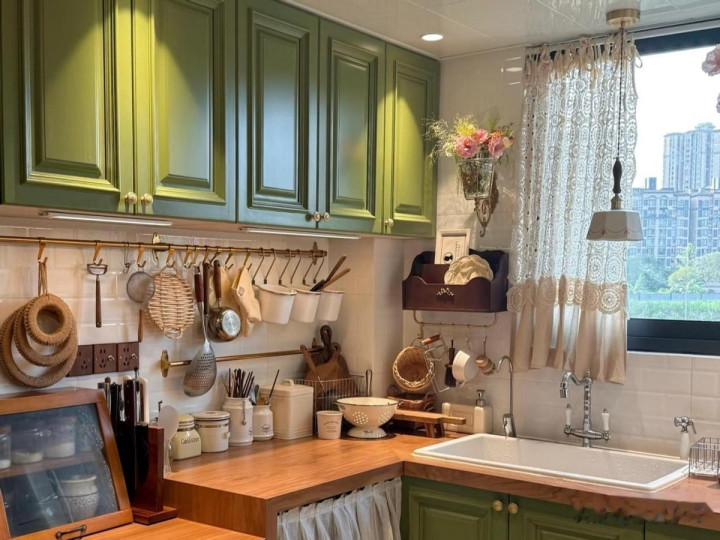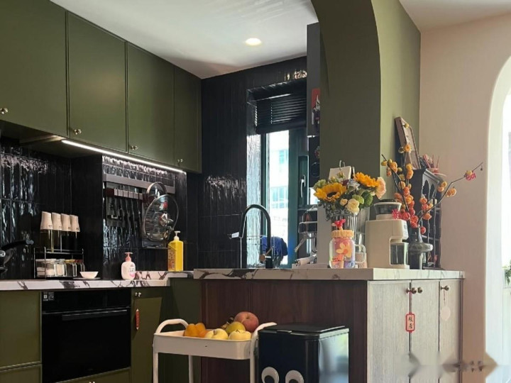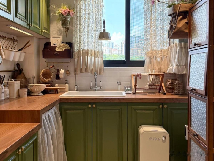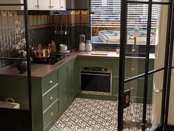 复古绿对房间的采光要求很高,如果厨房采光不好,要慎用复古绿,特别是深绿色。