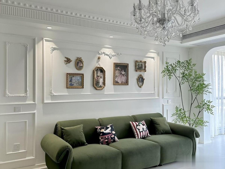 曾经的挂镜线,是在墙面的中上部做装饰线条,用于悬挂画框或者是镜子。但是,由于简约风逐渐流行,就慢慢被淘汰了。