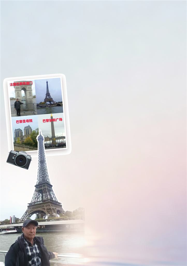 张大爷与埃菲尔铁塔的合照 光明网/图