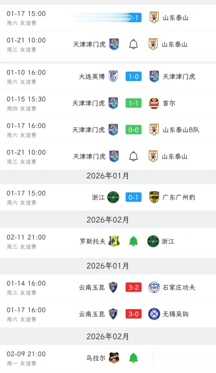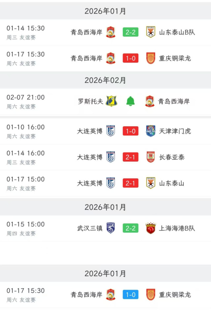 青岛西海岸则是2-2山东泰山B队,1-0重庆铜梁龙后,将与2月7号迎战俄超的罗斯托夫。