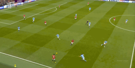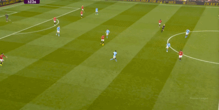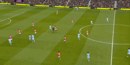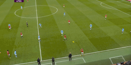 比如曼城曾在前场完成逼抢,让曼联需要在人员不整的情况下紧急防守: