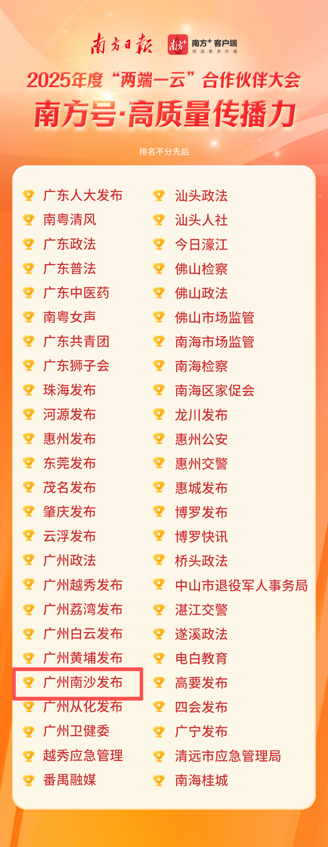 随着南沙激活“湾区棋眼”发展动能,传播工作也须与之同频共振。“广州南沙发布”南方号以持续稳定的高质量输出,逐步构建起具有辨识度和吸引力的区域传播体系,为南沙提升城市软实力、增强对外吸引力提供了有力支撑。